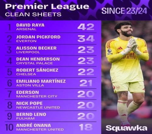 除了幾個破門實力出色的人物,在防守端加布里埃爾與薩利巴的中衛(wèi)組合固若金湯,幫助球隊延續(xù)了主場聯(lián)賽不丟球的紀(jì)錄。數(shù)據(jù)統(tǒng)計顯示,拉亞是近3個賽季零封次數(shù)最多的英超門將。
