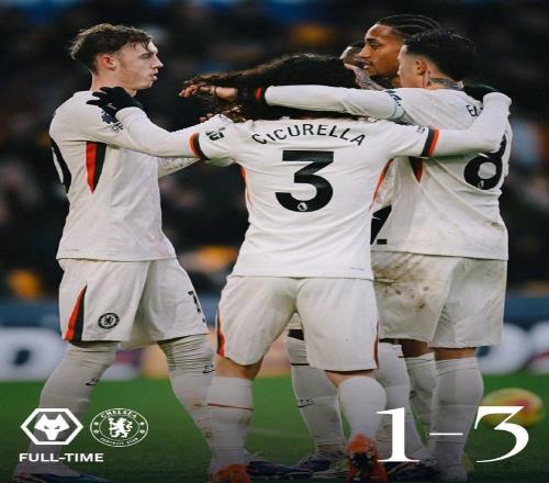 切爾西客場3-1擊敗墊底的狼隊后,藍軍豪取聯(lián)賽四連勝,在積分榜上進一步縮小與前四的差距,只比第四的曼聯(lián)少1分。狼隊繼續(xù)深陷降級泥潭,保級形勢愈發(fā)嚴峻。這場比賽的勝負懸念在上半場便基本揭曉,帕爾默的帽子戲法與若昂·佩德羅的兩次造點,成為藍軍客場奏凱的最大功臣,下半場狼隊雖扳回一球,但難以逆轉(zhuǎn)敗局,切爾西用一場勝利延續(xù)了新帥羅塞尼爾上任后的良好勢頭。