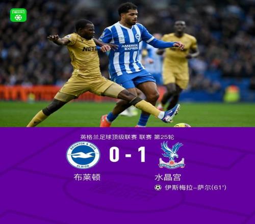 北京時(shí)間2月8日英超聯(lián)賽第25輪,布萊頓主場(chǎng)對(duì)陣水晶宮。伊斯梅拉-薩爾推射破門打進(jìn)全場(chǎng)唯一進(jìn)球,尤爾根-拉森造險(xiǎn)。最終,水晶宮1-0客勝布萊頓,取得近13輪首勝。