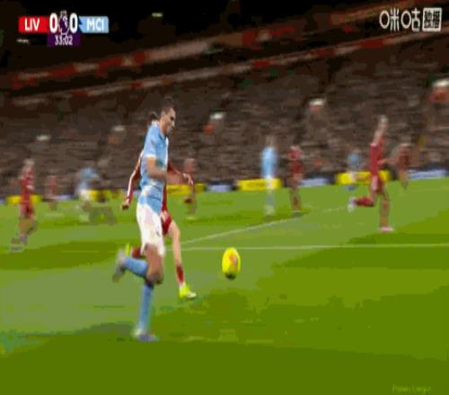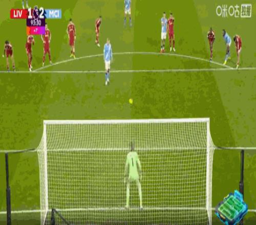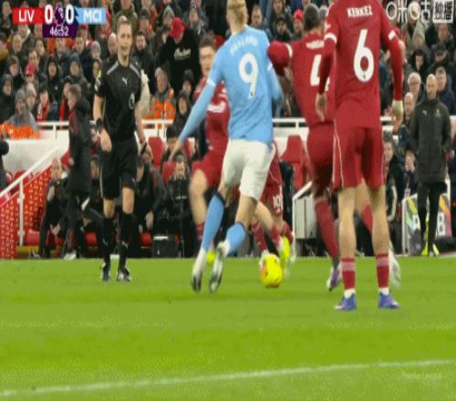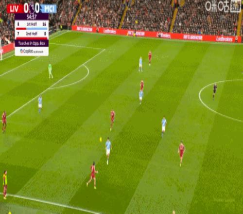 第84分鐘,哈蘭德頭球擺渡,B席門前鏟射破門,曼城扳平比分1-1利物浦!