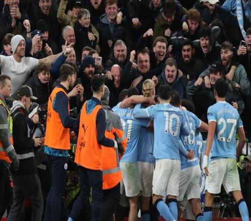 曼城在第84分鐘扳平比分!哈蘭德頭球擺渡到門(mén)前,伯納多-席爾瓦跟上倒地鏟射,球進(jìn)了!這粒進(jìn)球非常關(guān)鍵,極大地提升了曼城球員的士氣。補(bǔ)時(shí)階段,阿利松送點(diǎn)。哈蘭德主罰點(diǎn)球,他推射破門(mén),完成絕殺!哈蘭德怒吼脫衣慶祝!最后時(shí)刻索博斯洛伊因?yàn)榉敢?guī)被罰下。最終,曼城上演奇跡逆襲,2-1擊敗衛(wèi)冕冠軍利物浦。