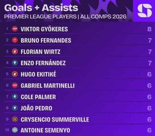 自2026年以來(lái),哲凱賴(lài)什已經(jīng)在各項(xiàng)賽事貢獻(xiàn)6球2助攻,是同期所有英超球員中各項(xiàng)賽事參與進(jìn)球數(shù)最多的(曼城和利物浦比賽開(kāi)打前)。