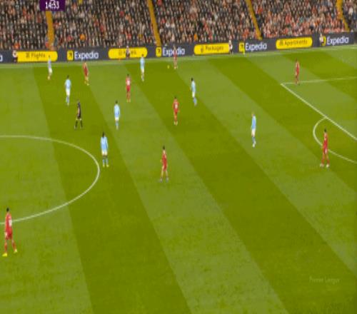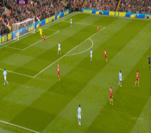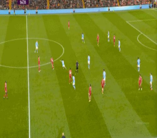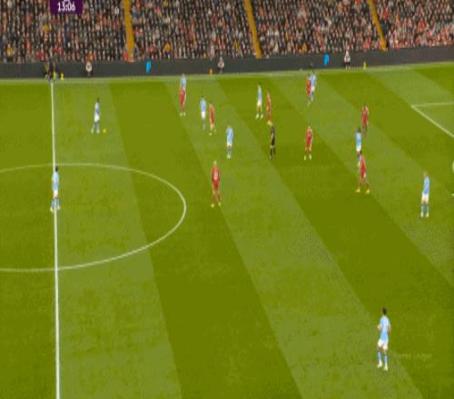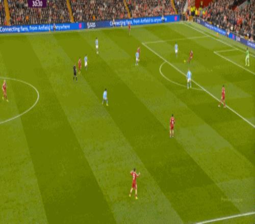 于是,在真的通過進(jìn)攻畫面調(diào)動起場上的情緒之后,利物浦開始能將壓力施加到曼城的后衛(wèi)身上了: