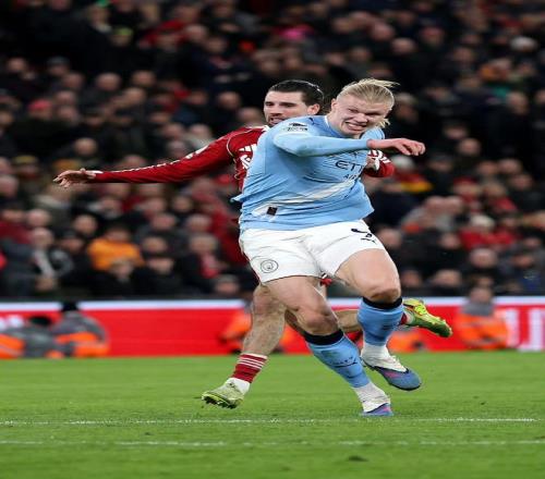 但曼城展現(xiàn)了冠軍球隊(duì)的韌性,第84分鐘,哈蘭德頭球擺渡,貝爾納多·席爾瓦鏟射破門,將比分扳為1比1,高潮在補(bǔ)時階段到來,曼城球員努內(nèi)斯在禁區(qū)內(nèi)被利物浦門將阿利松放倒,裁判判罰點(diǎn)球,哈蘭德主罰命中,完成絕殺,并脫衣慶祝領(lǐng)到黃牌。