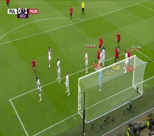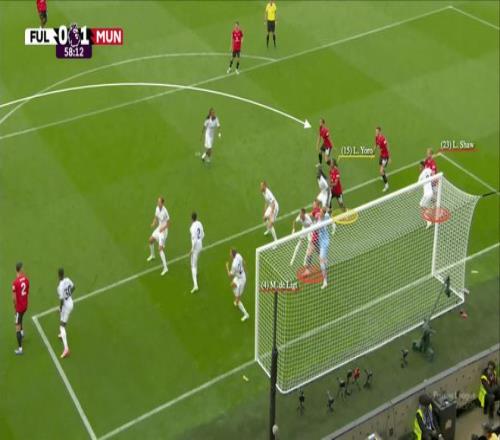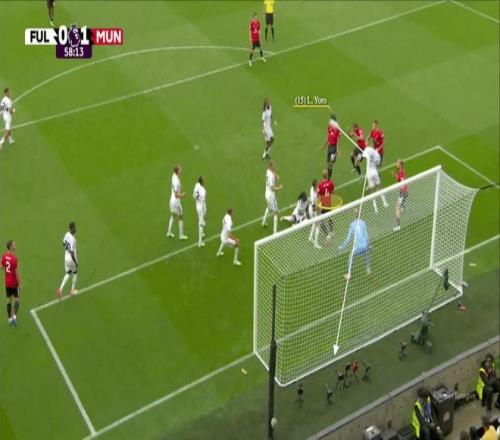 曼聯(lián)做客富勒姆的比賽,德里赫特以一敵三,為萊尼·約羅制造了頭球折射破門的良機。