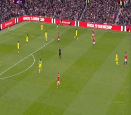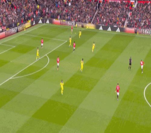 這顯然是嚴(yán)格遵循三后衛(wèi)站位的阿莫林時(shí)代不會(huì)出現(xiàn)的,更不是約羅打在馬奎爾身側(cè)時(shí)會(huì)常規(guī)出現(xiàn)的內(nèi)容。