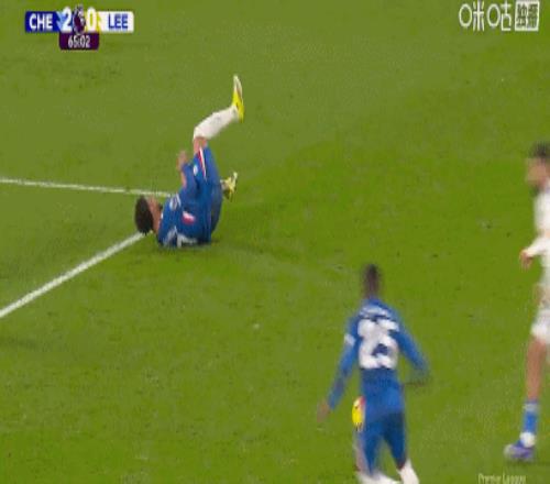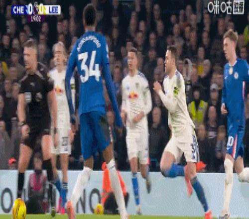 第13分鐘,格魯耶夫放倒帕爾默,裁判示意犯規(guī)