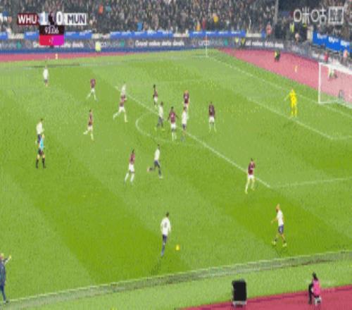 第49分鐘,鮑文傳中橫掃門(mén)前,紹切克近距離搶點(diǎn)破門(mén),西漢姆聯(lián)1-0曼聯(lián)。