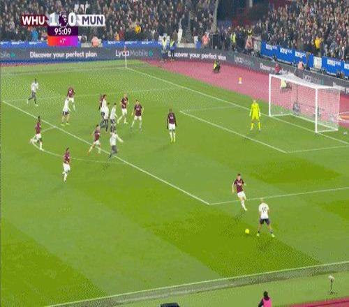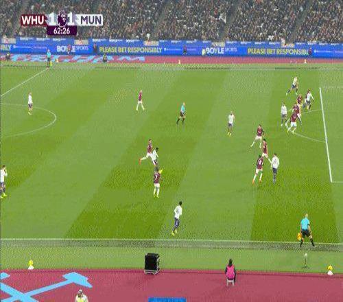 第50分鐘,鮑文右路低平球傳中,前點紹切克搶點將球捅入,西漢姆1比0曼聯(lián)。