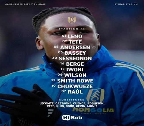 富勒姆首發(fā):1-萊諾、2-泰特、5-約西姆-安諾生、3-巴錫、30-瑞安-塞塞尼翁、16-桑德-貝格、17-伊沃比、8-哈里-威爾遜、32-史密斯-羅、19-丘庫埃澤、7-勞爾-希門尼斯