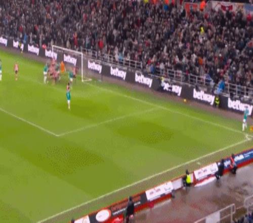 比賽開打之后,利物浦的中場組織非?;靵y,難以創(chuàng)造出有威脅的進(jìn)攻。第18分鐘,桑德蘭踢出快速反擊,穆杰萊右路傳中,布羅貝伊禁區(qū)內(nèi)包抄凌空推射,在科納特的干擾下踢疵,利物浦逃過一劫。