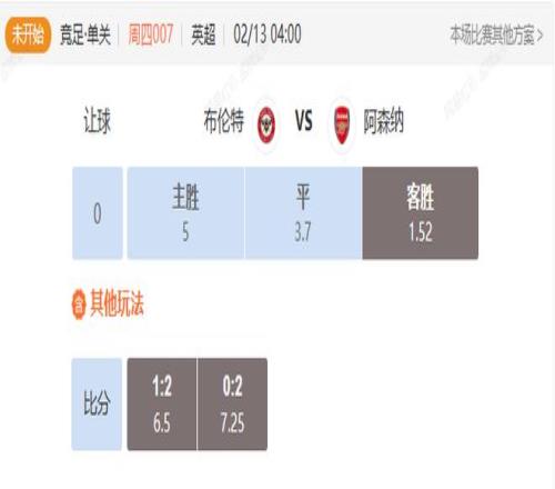 布倫特福德居英超第7,近2輪連勝。阿森納居第一,近4場賽事連勝、近17場賽事僅輸一場,聯(lián)賽杯闖入決賽,將對陣曼城。本賽季布倫特福德客場0比2負于阿森納,近9次對陣阿森納不勝。