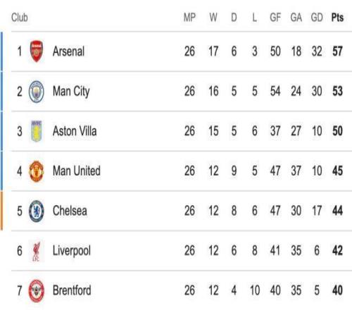 最終,阿森納客場1比1布倫特福德,只收獲1分,領跑優(yōu)勢被曼城縮減成4分。