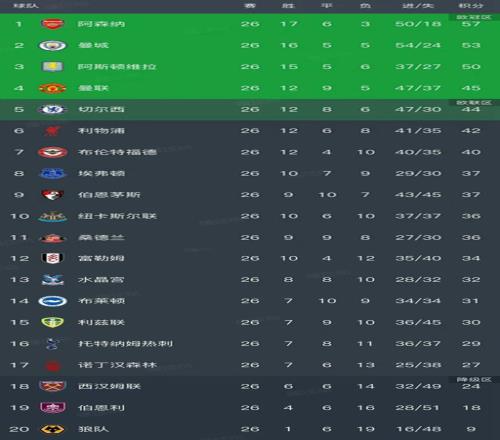 隨著槍手11小蜜蜂,曼城30,英超第26輪排名出爐!24名差8分