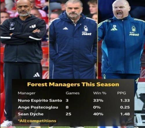 只要看看本賽季諾丁漢森林這三位前任主帥的戰(zhàn)績,努諾執(zhí)教3場,勝率33%,場均積1.33分,離隊(duì)原因與老板關(guān)系破裂;波斯特科格魯執(zhí)教8場,戰(zhàn)績更是無法直視的2平6負(fù)勝率0%,場均積0.25分;肖恩戴奇執(zhí)教25場,勝率40%,場均積1.48分,戴奇其實(shí)是這三人中成績最好的那個(gè)。 他40%的勝率甚至超過了曾經(jīng)帶隊(duì)進(jìn)歐戰(zhàn)的努諾(38.36%)。如果只計(jì)算戴奇上任后的積分,森林甚至能排在積分榜中游。但他還是下課了。