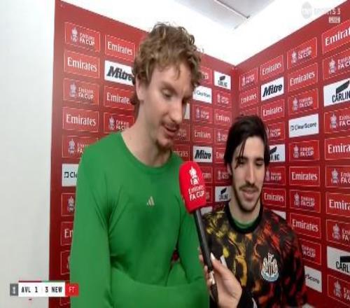 英格蘭足總杯第4輪,紐卡客場3-1戰(zhàn)勝維拉,進(jìn)球的沃爾特馬德和托納利賽后接受了TNT體育的采訪。