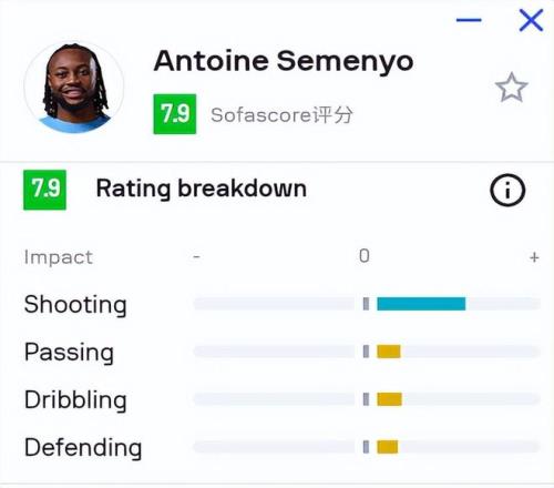 第二是“邊前鋒”屬性,彌補曼城短板。 曼城此前進攻端過度依賴哈蘭德的問題時有顯現(xiàn)。當(dāng)挪威射手被針對性限制時,球隊往往缺乏第二穩(wěn)定得分點。多庫擅長突破創(chuàng)造機會,但射門效率和進球轉(zhuǎn)化率有限。塞梅尼奧的到來正好彌補了這一短板的,他既能在邊路利用1米85的身材和出色爆發(fā)力完成突破,又能適時內(nèi)收扮演第二得分手。這種“邊前鋒”雙屬性,讓曼城的進攻體系更加多元。