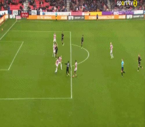 第55分鐘,凱文利用個人能力得分,富勒姆1-1斯托克城