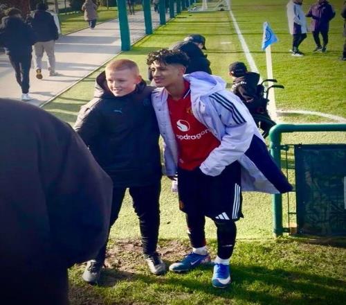 球迷和JJ加布里埃爾在U18曼市德比賽后合影,本場比賽加布里埃爾打入1個進(jìn)球,球隊(duì)3-1擊敗曼城。