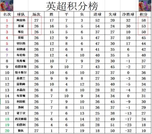 英超最新積分戰(zhàn)報冷門!阿森納慘遭副班長絕平再給曼城追趕機(jī)會