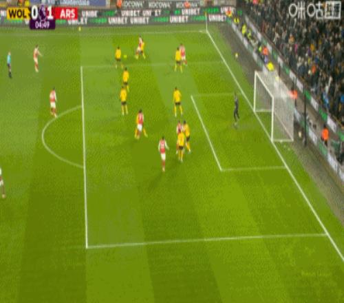 2球領(lǐng)先的阿森納防線有些松懈,5分鐘后狼隊左路壓上,連續(xù)的傳遞,圣地亞哥禁區(qū)前沿接球轉(zhuǎn)移到右側(cè),完全無人防守的雨果,禁區(qū)右側(cè)前沿接球橫切調(diào)整兩步后左腳大力兜射,皮球直掛球門遠(yuǎn)端死角,狼隊1:2快速扳回一球。第66分鐘,阿森納前場反搶再攻,馬丁內(nèi)利點(diǎn)球點(diǎn)處近距離轉(zhuǎn)身大力掃射,若澤薩奮勇地用腳將球擋出。補(bǔ)時階段,狼隊左路壓上,雨果禁區(qū)邊上拿球回傳,馬內(nèi)禁區(qū)角上策應(yīng)斜吊門前,阿森納后防失誤送上大禮,加布里埃爾和門將配合不默契,兩人搶到了一塊,球沒有打遠(yuǎn),落到點(diǎn)球點(diǎn)右側(cè)埃多齊跟前,埃多齊笑納大禮迎球大力凌空掃射,剛替補(bǔ)登場的卡拉菲奧里門線上奮力一擋,皮球擊中門柱內(nèi)側(cè)彈入網(wǎng)窩,狼隊2:2絕平阿森納。