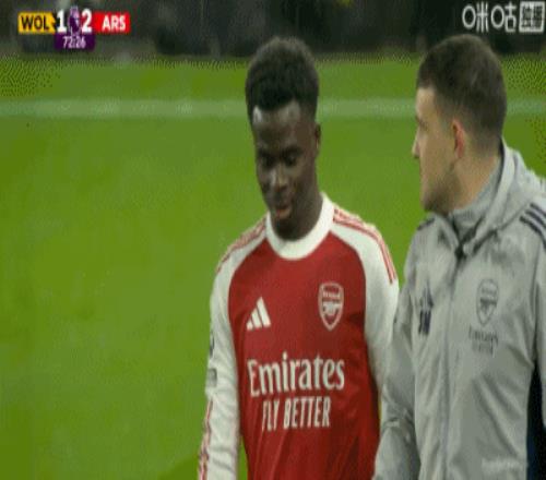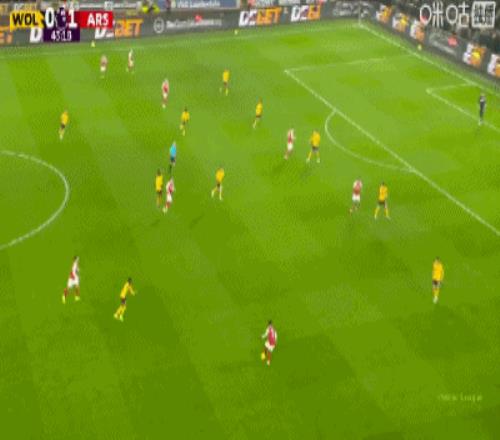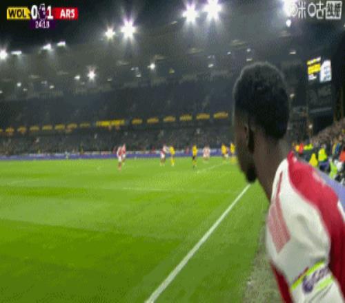 第5分鐘,薩卡禁區(qū)插上頭球破門,阿森納1-0領(lǐng)先狼隊