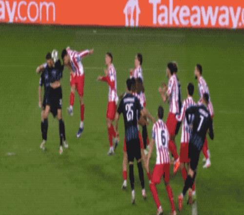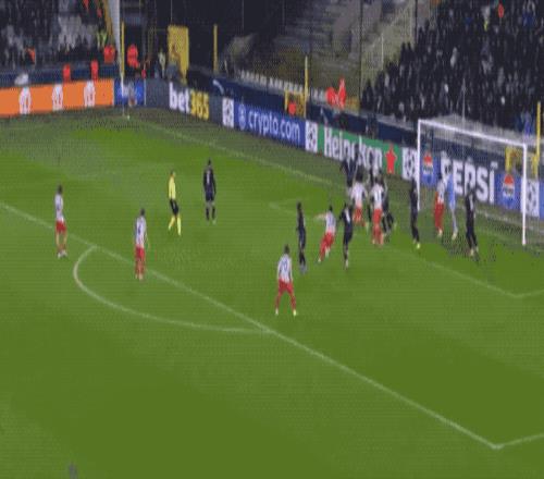 第51分鐘,布魯日的角球造成了馬競(jìng)門前的一片混亂,奧布拉克已經(jīng)做出神奇撲救,奧涅斯卡依舊補(bǔ)射破門。