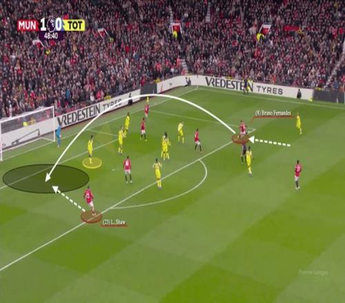 在2-0擊敗熱刺的比賽里,B費的跑位迷惑了熱刺左后衛(wèi)德斯蒂尼·烏多吉,隨后傳給卡塞米羅,「胖虎」與姆貝莫配合未果,B費又率先做出反應(yīng),第一時間傳中給左側(cè)的盧克·肖,后者助攻阿馬德·迪亞洛得分,可惜因為越位被判無效。