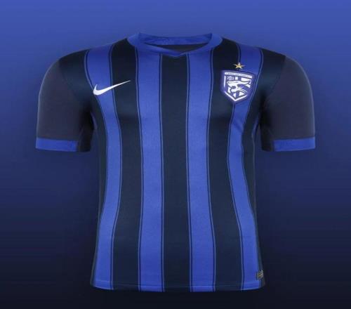 武漢三鎮(zhèn)主場(chǎng)球衣采用經(jīng)典的藍(lán)黑色條紋設(shè)計(jì),象征著長(zhǎng)江漢水在此交融匯聚,孕育出一代又一代的武漢足球文化。