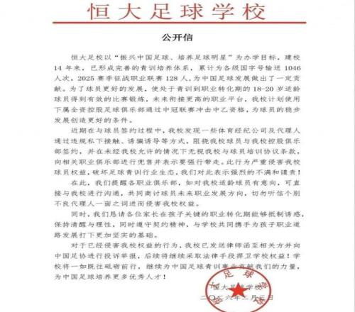 青訓(xùn)精英遭哄搶拒絕為他人做嫁衣!罕見,恒大足校公開發(fā)文譴責(zé)