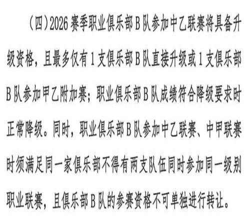 2026賽季職業(yè)聯(lián)賽政策變化,升降級有調(diào)整,B隊迎來新機遇
