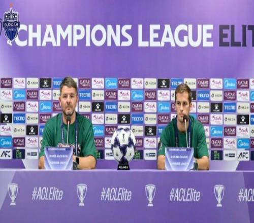 北京時間2月16日,在亞冠精英聯(lián)賽階段收官戰(zhàn),武里南聯(lián)主場對陣上海申花的賽前,武里南聯(lián)主帥馬克-杰克遜和隊員喬希奇出席了新聞發(fā)布會。