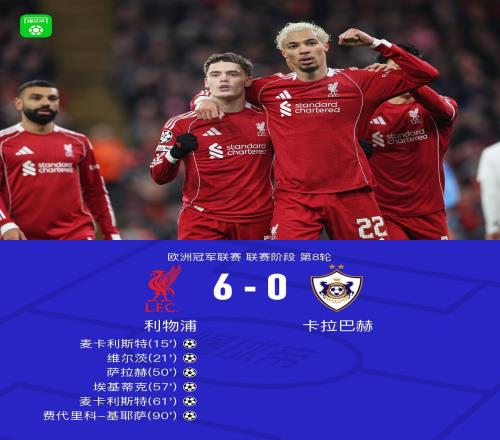 北京時間1月29日歐洲冠軍聯(lián)賽 聯(lián)賽階段 第8輪,利物浦對陣卡拉巴赫。利物浦麥卡利斯特梅開二度,維爾茨破門,薩拉...