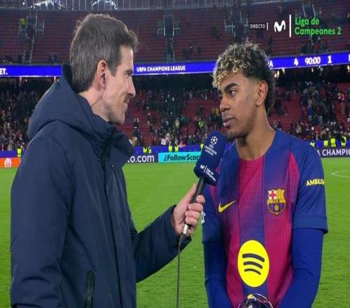 幫助球隊(duì)在歐冠主場(chǎng)4-1擊敗哥本哈根拿到前八后,巴薩前鋒亞馬爾當(dāng)選全場(chǎng)最佳,賽后接受了Movistar+的采訪。感受...