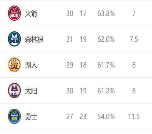 NBA最新排名出爐!西部第二大爆冷,一隊(duì)反超湖人,火箭守住第四