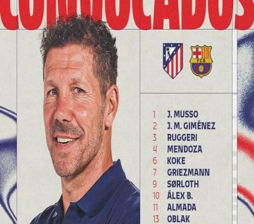 馬競客戰(zhàn)拉科:格列茲曼、小蜘蛛首發(fā),卡多佐、穆索出戰(zhàn)