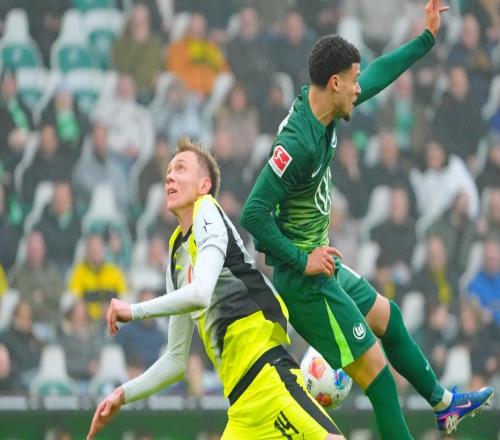 北京時間2月8日,德甲第21輪,沃爾夫斯堡主場對陣多特蒙德。比賽中。圖源:視覺中國上半場第38分鐘,瑞爾森開出角球...