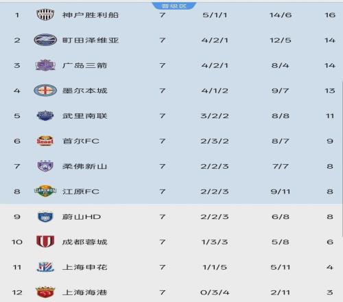 亞冠精英賽7輪積分榜:中超2隊提前出局,東亞區(qū)8強(qiáng)已定5席