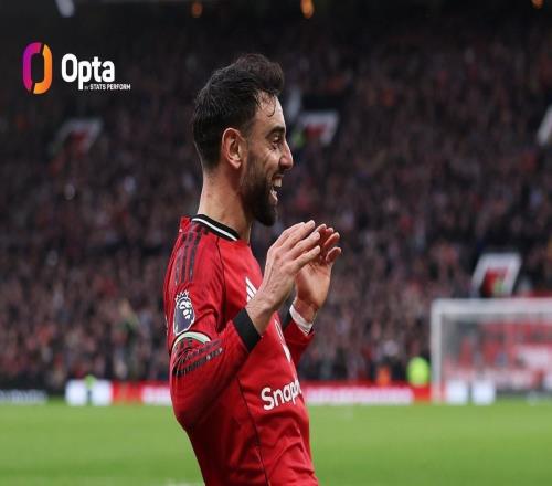 在與熱刺的英超比賽中打入一球,布魯諾-費(fèi)爾南德斯曼聯(lián)生涯已直接參與200球,僅用了314場(chǎng),隊(duì)史英超時(shí)代僅次于魯...