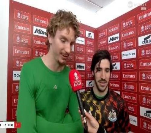 英格蘭足總杯第4輪,紐卡客場3-1戰(zhàn)勝維拉,進球的沃爾特馬德和托納利賽后接受了TNT體育的采訪。談比賽托納利:我...