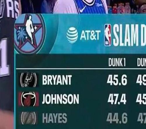 扣籃大賽首輪,卡特布萊恩特得到45.6分