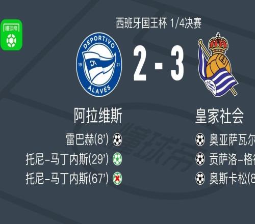 北京時間2月5日西班牙國王杯 1/4決賽,阿拉維斯對陣皇家社會。阿拉維斯雷巴赫破門,托尼-馬丁內(nèi)斯破門。皇家社...