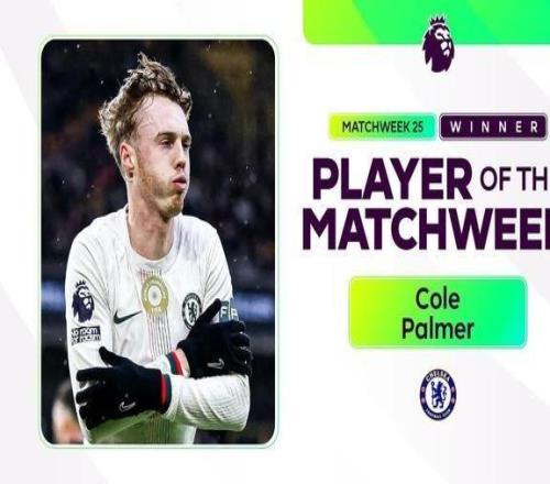 北京時(shí)間2月10日,英超官方宣布,切爾西攻擊手帕爾默當(dāng)選聯(lián)賽第25輪最佳球員。英超官方公告切爾西攻擊手科爾-帕...
