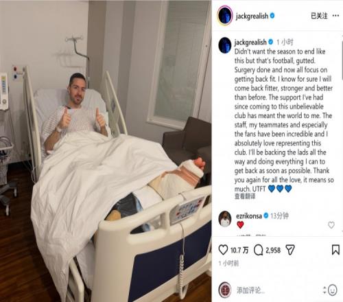 格拉利什社交媒體宣布完成手術(shù)將全力支持隊(duì)友期待快速?gòu)?fù)出_英超直播