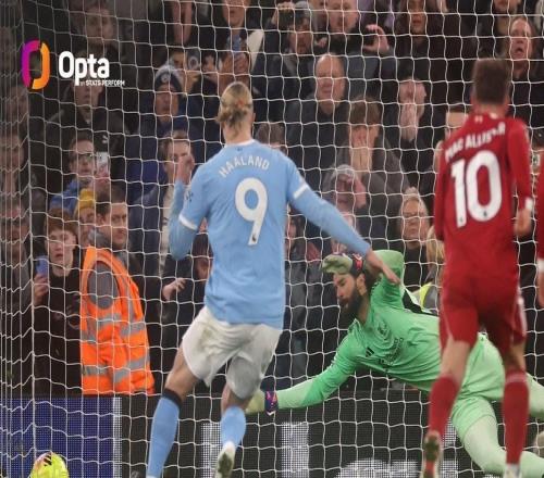 英超第25輪,曼城客場2-1逆轉(zhuǎn)擊敗利物浦,哈蘭德在92分42秒打入的點(diǎn)球是有統(tǒng)計(jì)以來英超客戰(zhàn)利物浦最晚的制勝球...
