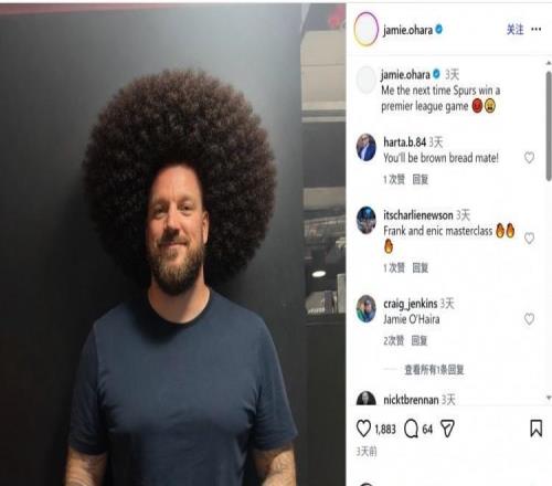 奧哈拉此前玩“蓄發(fā)哥”梗調(diào)侃熱刺不贏球,本輪熱刺又輸了
