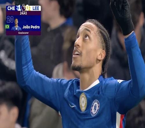 英超第26輪,切爾西主場對陣利茲聯(lián),上半場若昂-佩德羅破門為切爾西取得領(lǐng)先,至此,若昂-佩德羅最近5場英超主場比...