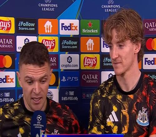 在客場6-1戰(zhàn)勝卡拉巴赫的賽后,紐卡后衛(wèi)特里皮爾和本場比賽上演大四喜的戈登接受了CBS體育的采訪。在采訪中,他...